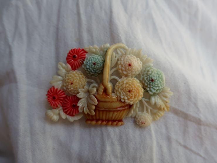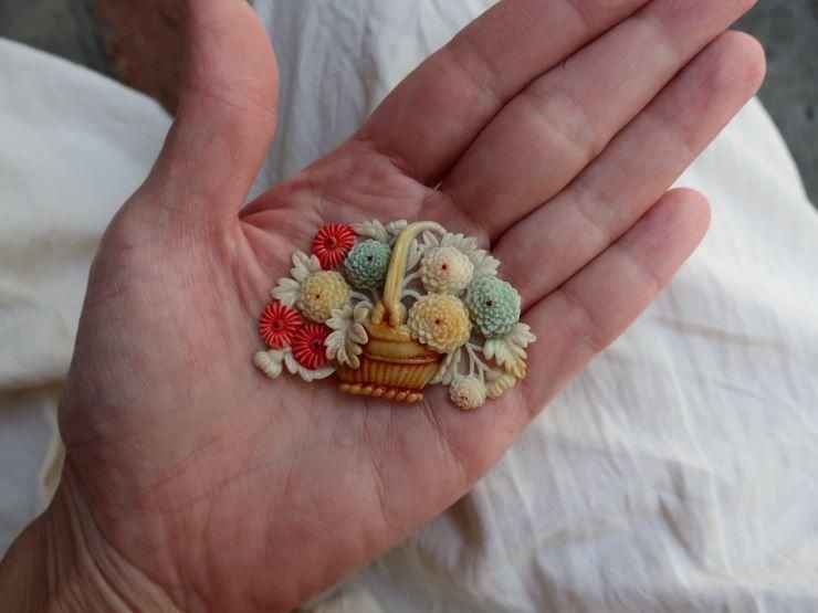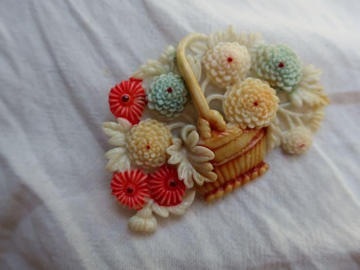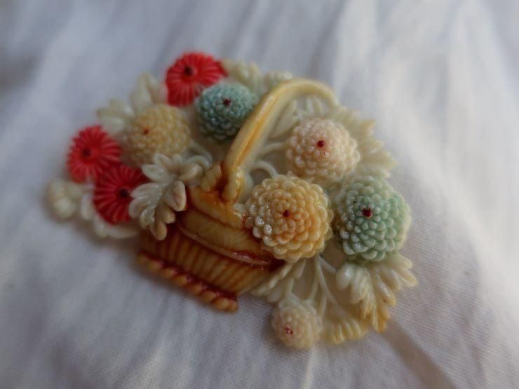 ÆüËܤǺî¤é¤ì²¤ÊƤÇÈÎÇ䤵¤ì¤¿¥»¥ë¥í¥¤¥ÉÀ½¤Î¥Ö¥í¡¼¥Á¡£²Ö¤«¤´¥â¥Á¡¼¥Õ¤Ç¤â¤É¤³¤È¤Ê¤¯Ï¤ÎÊ·°Ïµ¤¤ò´¶¤¸¤Þ¤¹¡£½À¤é¤«¤Ê¿§ºÌ¡¢ºÙ¤«¤Ê²Ö¤Ó¤é¤Îºî¤ê¹þ¤ß¤Ë¥»¥ë¥í¥¤¥É¤Ê¤é¤Ç¤Ï¤Î¤Á¤ç¤Ã¤È¥Á¡¼¥×¤ÊÉ÷¹ç¤¤¤¬Ì¥ÎϤǤ¹¡£1940ǯÂåÁ°¸å¤Î¸Å¤¤¥Ö¥í¡¼¥Á¤Ê¤Î¤Ç¥Ö¥í¡¼¥Á¥Ô¥ó¤Î¥¹¥È¥Ã¥Ñ¡¼¤¬¤¢¤ê¤Þ¤»¤ó¡£ÃåÍѤκݤϥԥó¤ò¥Ñ¥Á¥ó¤È¸À¤¦¤Þ¤Ç¥­¥ã¥Ã¥Á¤Ë¤Ï¤á¹þ¤ß¤·¤Ã¤«¤êα¤Þ¤Ã¤¿¤³¤È¤ò³Îǧ¤·¤Æ¤«¤é¤ª½Ð¤«¤±¤¯¤À¤µ¤¤¡£