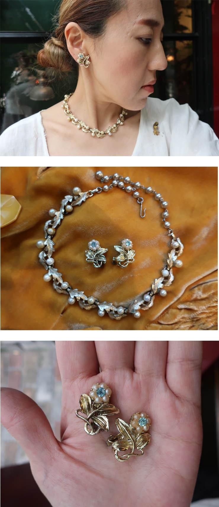 ベルカプリの商品は1940年代から1980年代のヴィンテージコスチュームジュエリーです。ラインストーンの曇り、メタルメッキの変色、ラインストーン接着部分の接着剤の黄変、パール加工の剥げなど、長い年月を経たことによる経年劣化が見られる商品がございます。